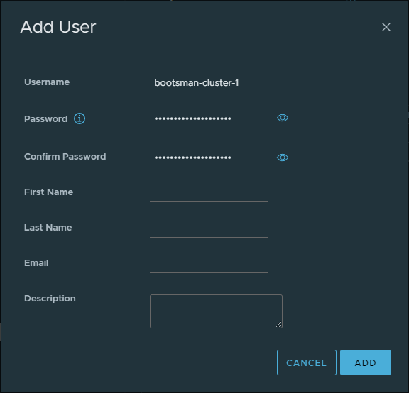 Заполните в соответствии с вашими правилами для создания пользователей.