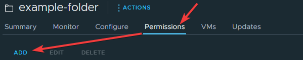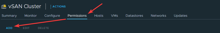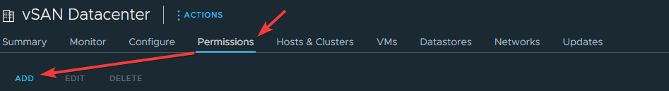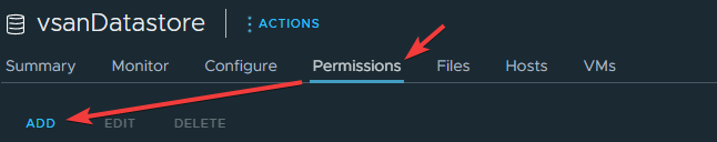 Выберите DataStore, который будут использовать будущие виртуальные машины, перейдите в Permissions и нажмите ADD