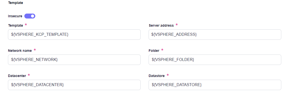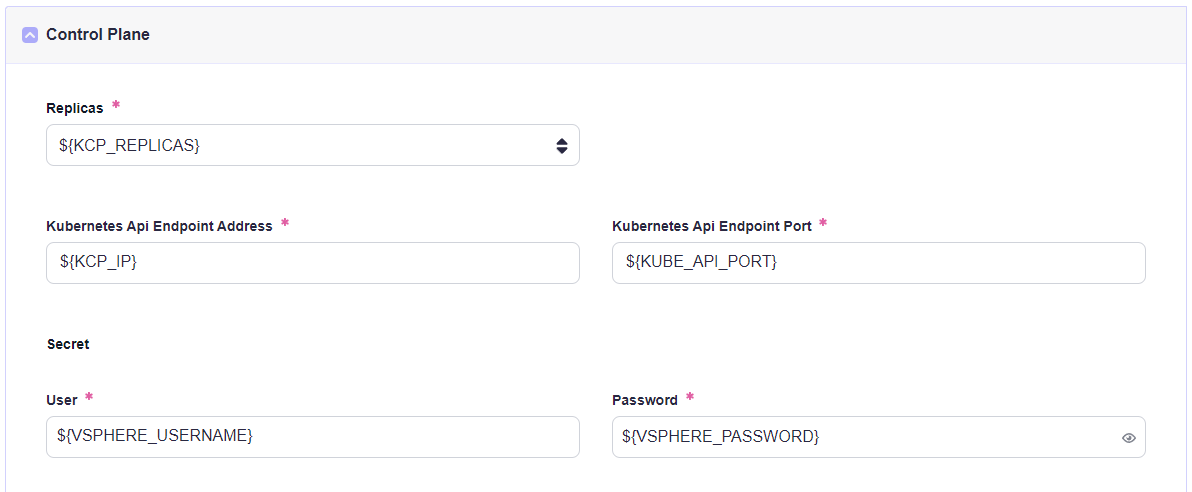| ${VSPHERE_DATACENTER} | Имя датацентра | Должно быть идентичным с настройкой указанной в Control Plane |