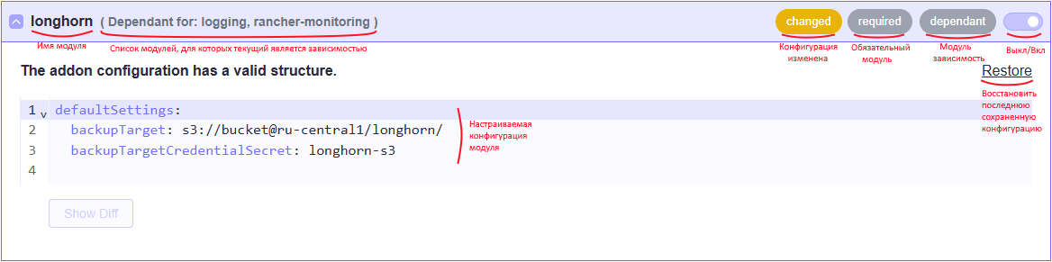 | ${CLUSTER_NAMESPACE} | Имя неймспейса, куда нужно установить модуль | |