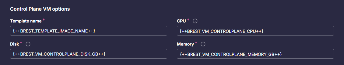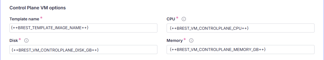 | BREST_VM_CONTROLPLANE_DISK_GB | Объём дискового хранилища. Пример: 45Gi |