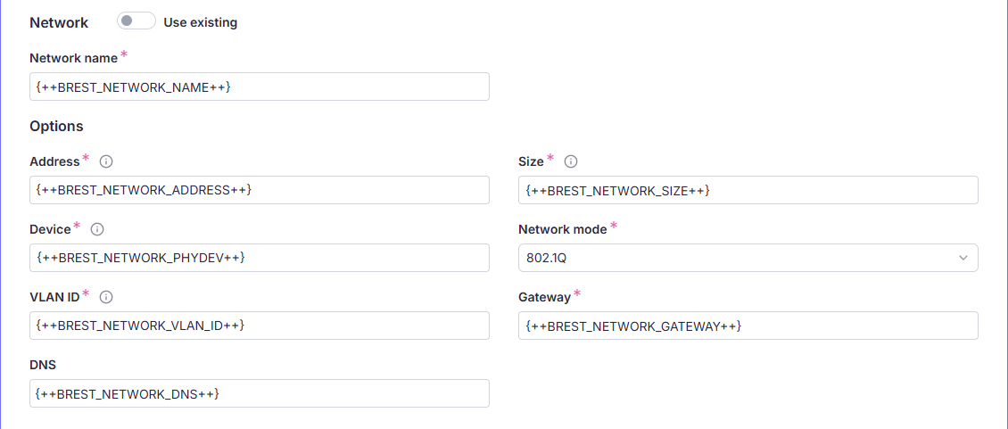 | BREST_NETWORK_NAME | Имя сети, в которую будут подключены новые виртуальные машины | |