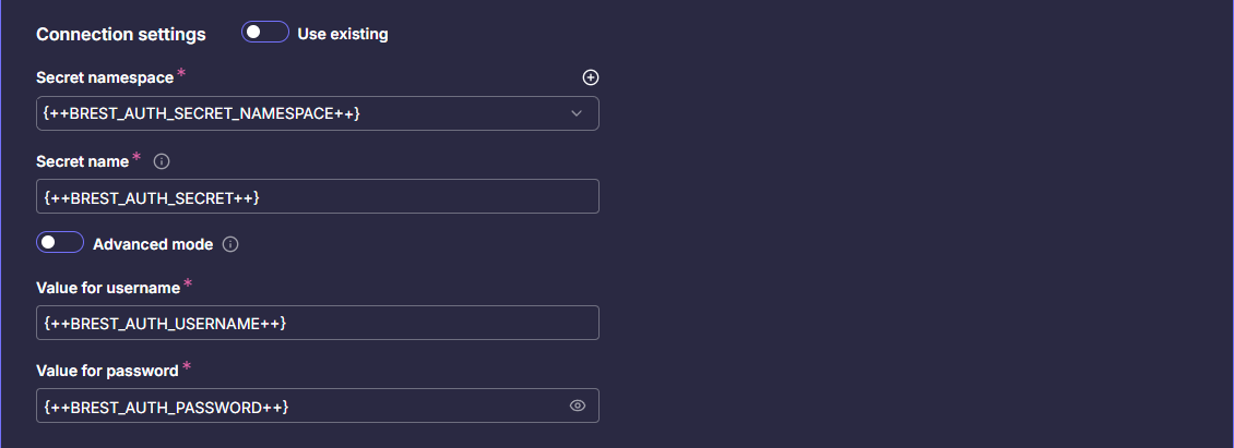 | BREST_AUTH_SECRET_NAMESPACE | Имя namespace, в котором размещен secret для авторизации | |