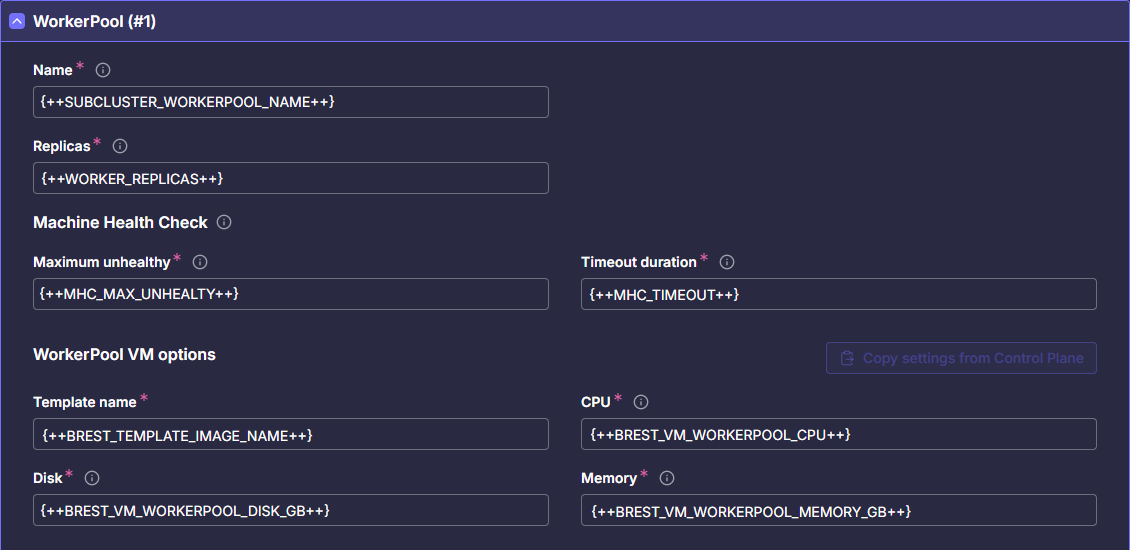 | BREST_VM_WORKERPOOL_DISK_GB | Объём дискового хранилища. Пример: 60Gi |