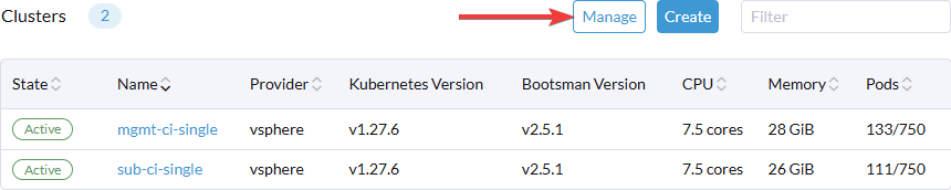 Выберите интересующий кластер и нажмите на его имя. Управления узлами для управляющего и подчиненного идентично.