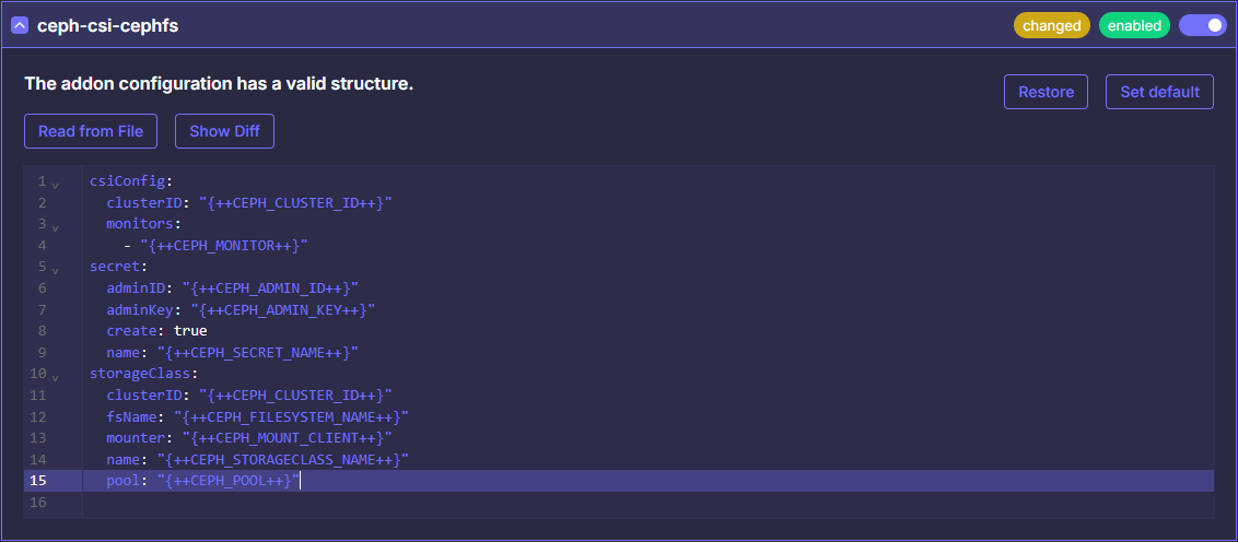 Модуль обеспечивает работу с файловой системой Ceph внутри кластера Kubernetes