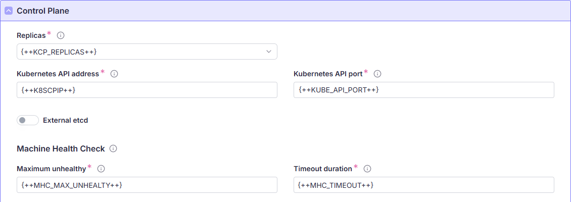 | KCP_REPLICAS | Количество узлов с ролью master. Может принимать значения 3 или 5 |