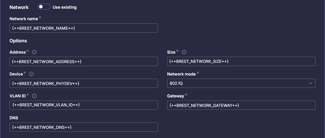 | BREST_NETWORK_NAME | Имя сети, в которую будут подключены новые виртуальные машины | |