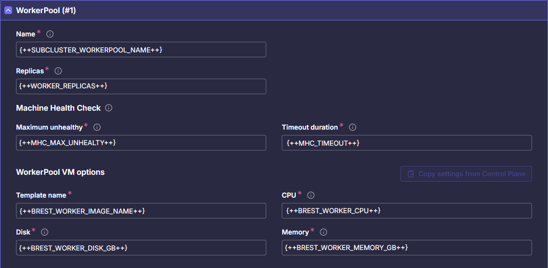 | BREST_WORKER_IMAGE_NAME | Имя шаблона виртуальной машины, из которого будут созданы новые узлы с ролью worker |