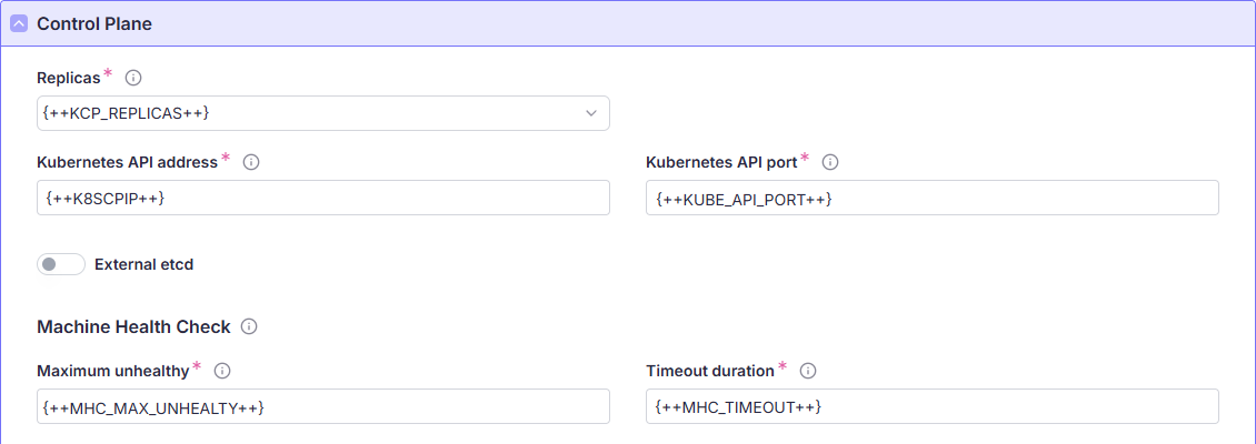 | KCP_REPLICAS | Количество узлов с ролью master. Может принимать значения 3 или 5 |