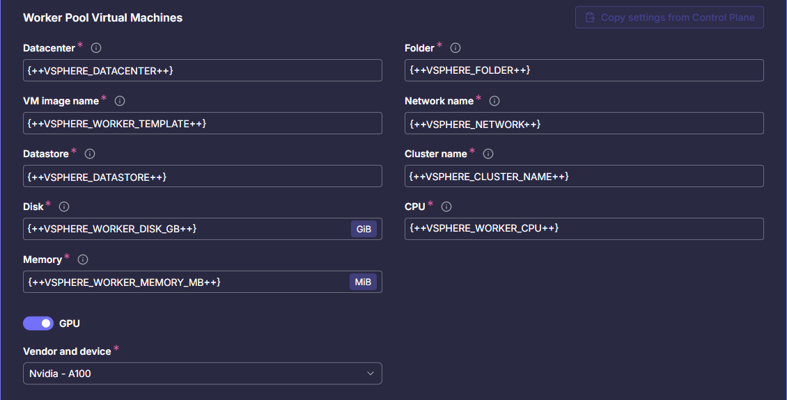 - Имя шаблона виртуальной машины, из которого будут созданы новые узлы с ролью worker
