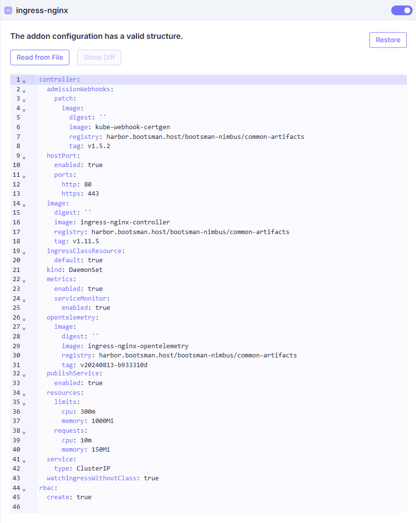 Настройка модуля в соответствии с ролью Bootsman-ingress