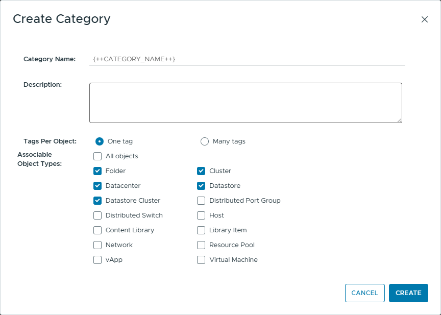 2. Создать категорию и тег vSphere.