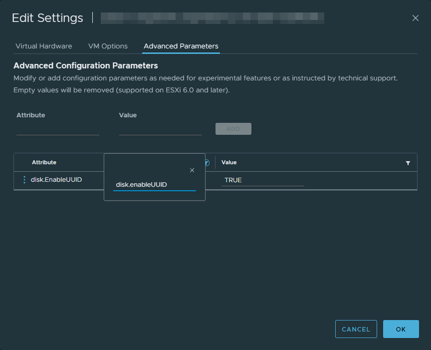 Параметр для образов машин disk.enableUUID=TRUE