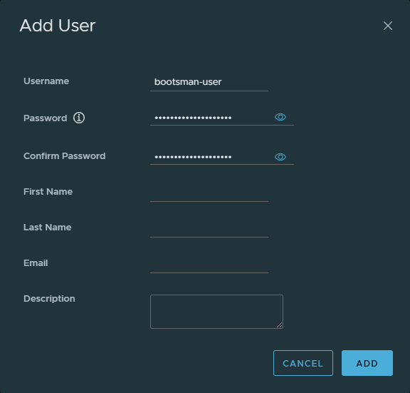 Заполните в соответствии с вашими правилами для создания пользователей.