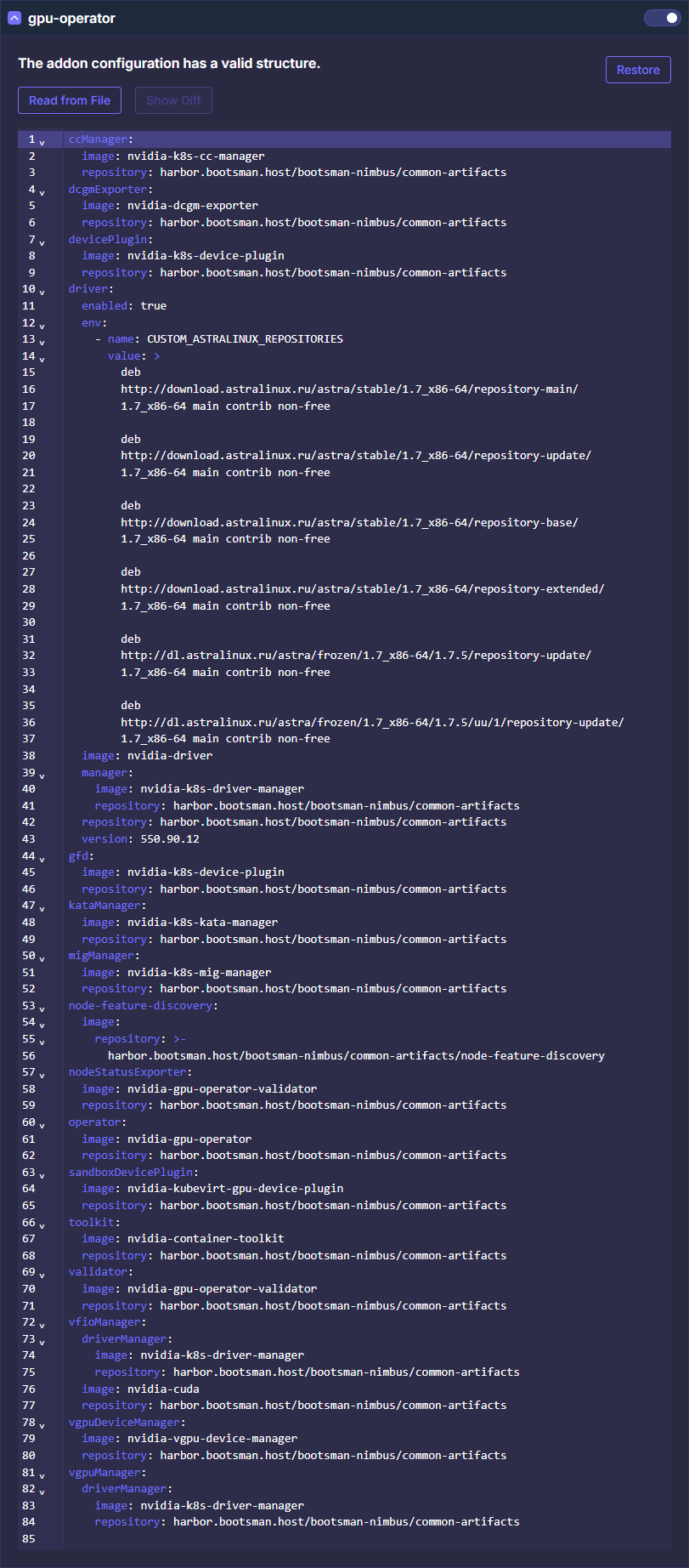 Для работы с графическими устройствами потребуется создать в подчиненном кластере WorkerPool с ролью bootsman-gpu.