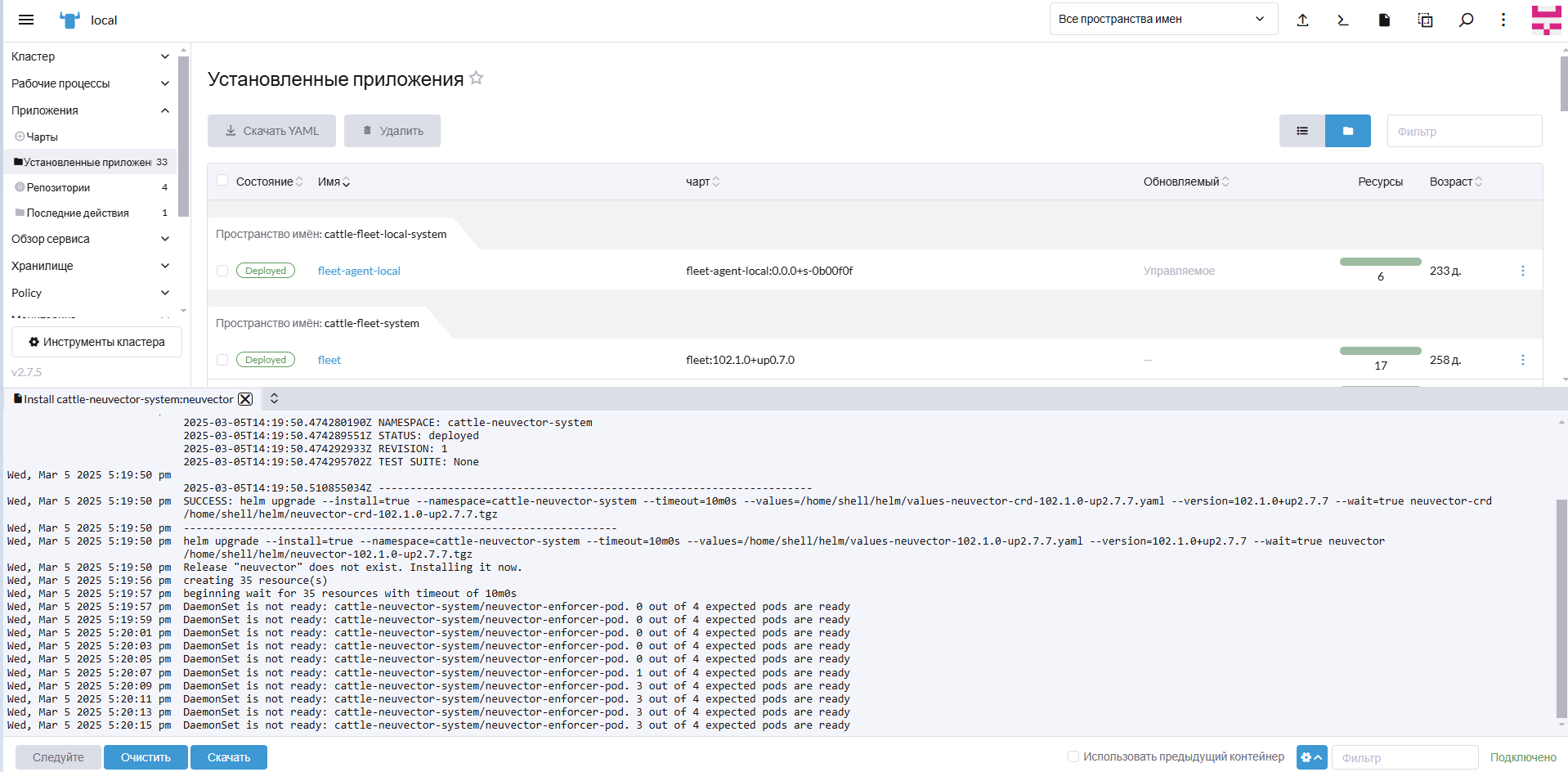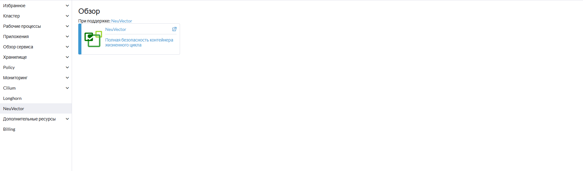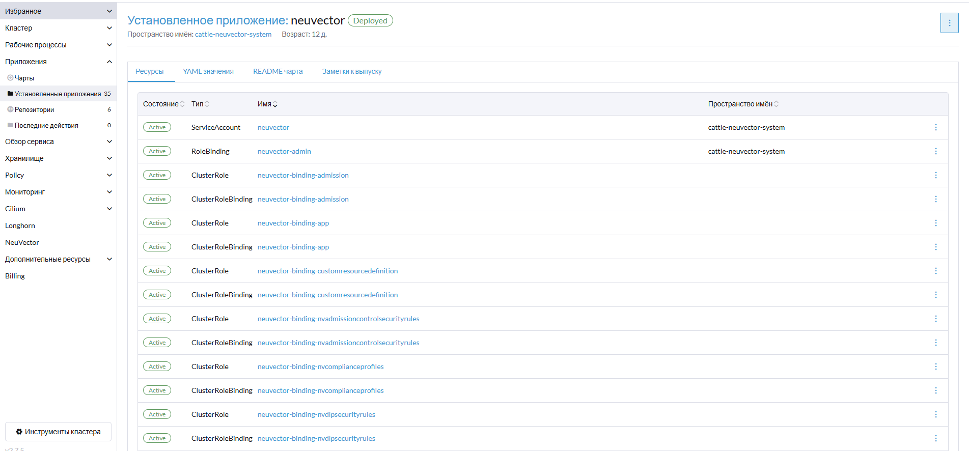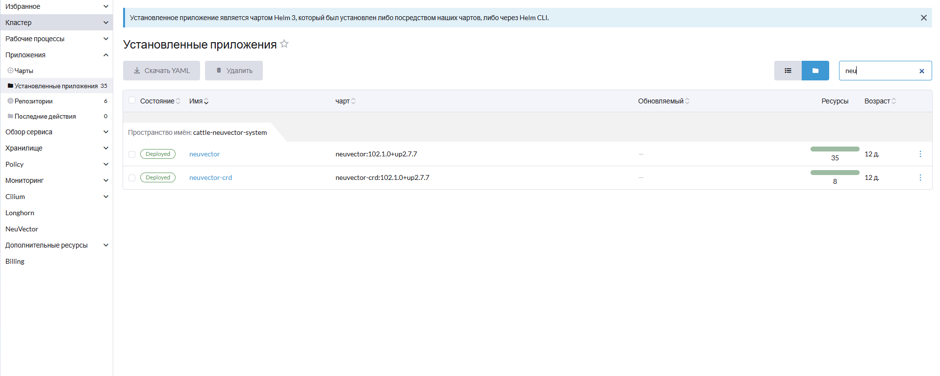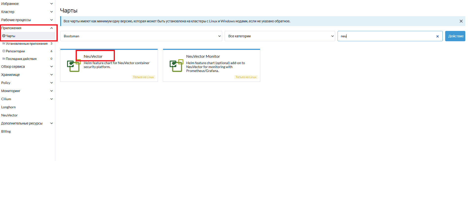 Установка программного продукта NeuVector осуществляется с помощью каталога приложений