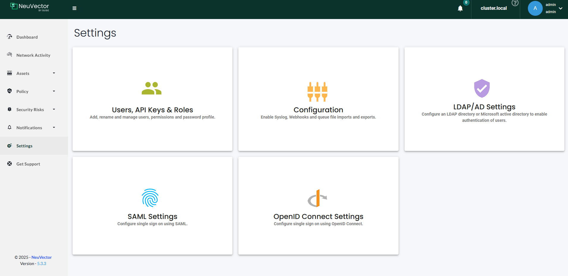 Порядок доступа определяется переменными, заданными в ходе установки и возможен через встроенный элемент Платформы Боцман через появившийся новый пункт меню NeuVector