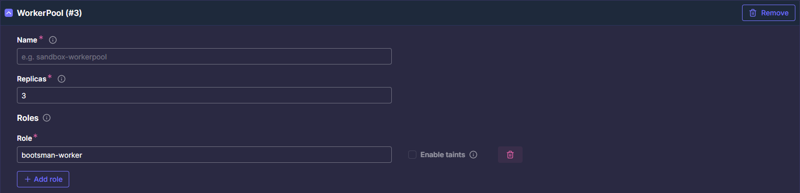 А также возможно добавление Taint для всех узлов объекта WorkerPool, которым присвоена роль, с помощью опции preventOtherApplications: