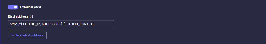 Формат заполнения: "https://ETCD_IP_ADDRESS:$ETCD_PORT"