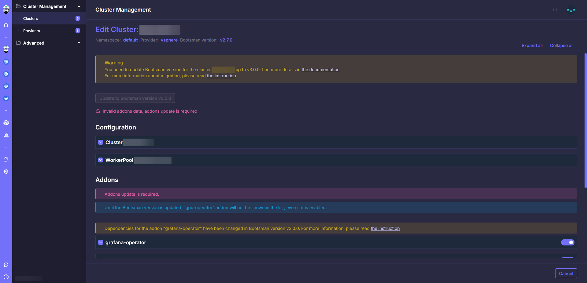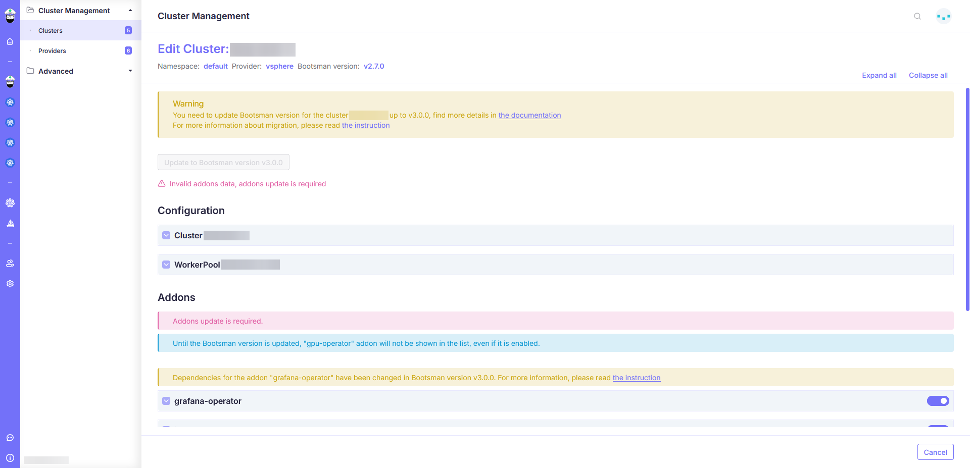 - Все кластеры должны иметь версию Bootsman не ниже v2.7.0.