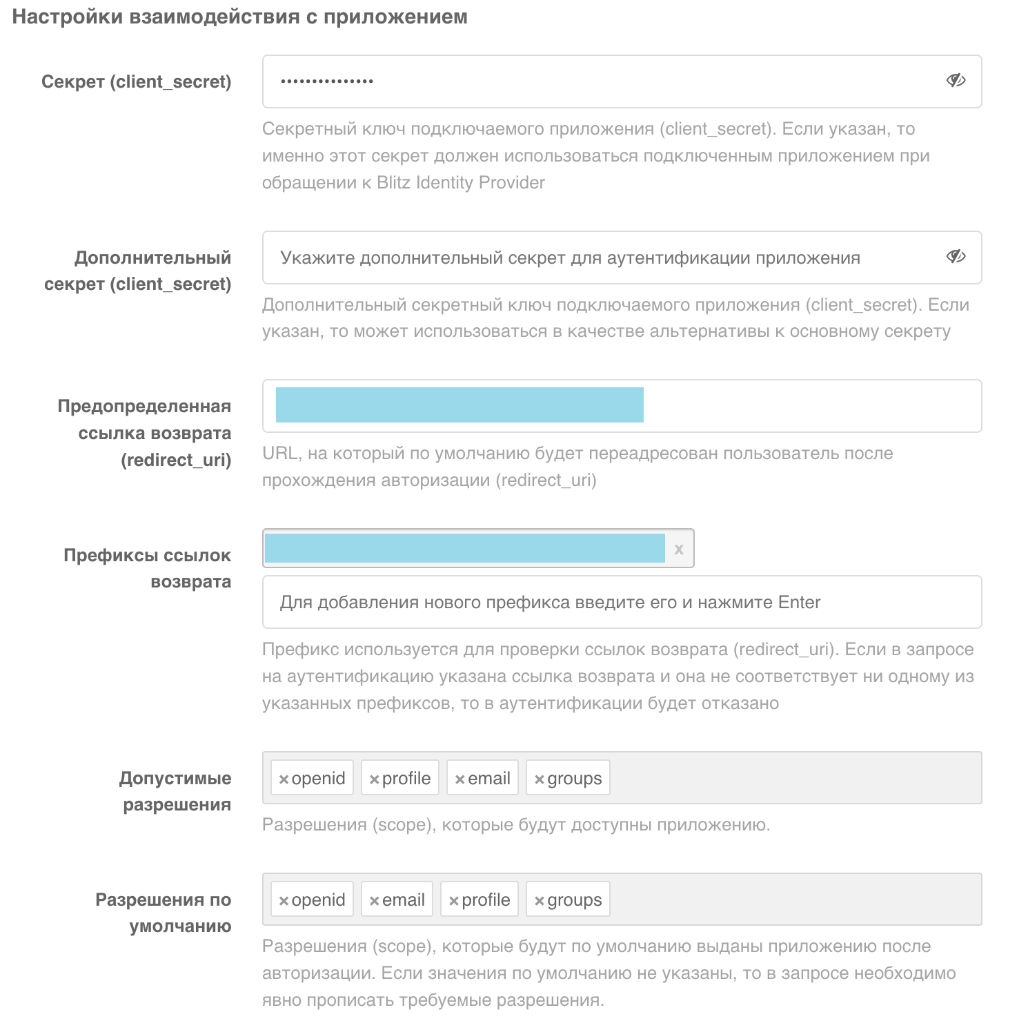 • Это адреса, на которые Blitz может перенаправлять после аутентификации.