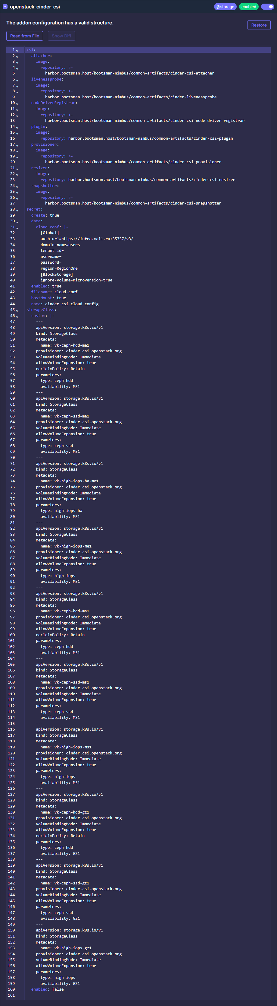 В случае если Openstack Cinder CSI является единственным модулем хранилища данных, добавьте аннотацию в один из блоков StorageClass: