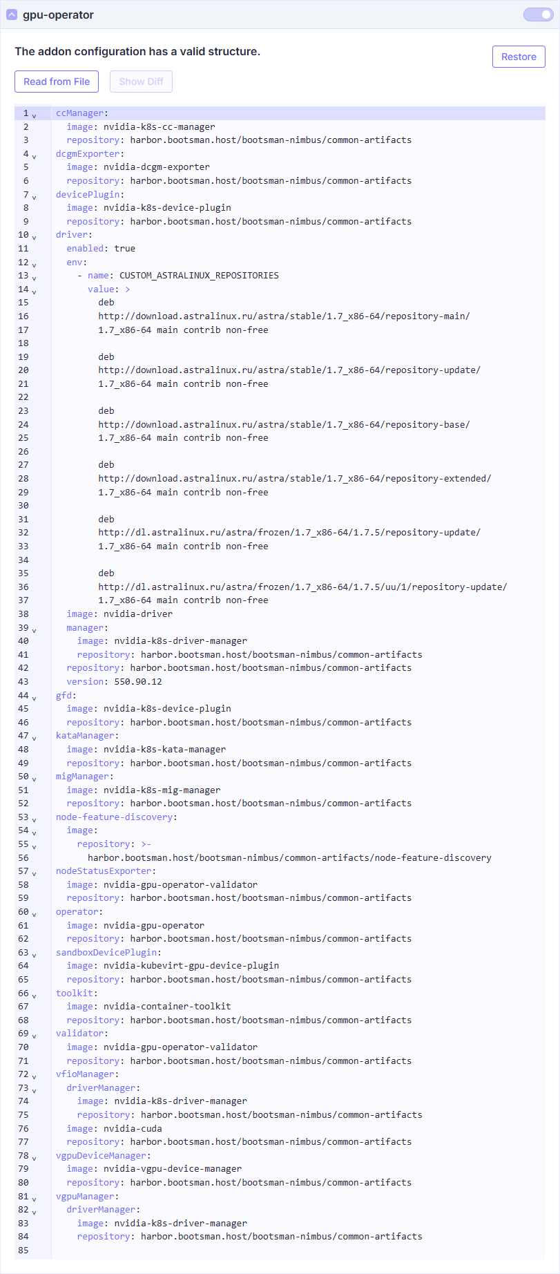 Для работы с графическими устройствами потребуется создать в подчиненном кластере WorkerPool с ролью bootsman-gpu.