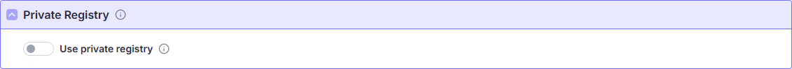В случае, если вы хотите использовать наш репозиторий образов, то переключите параметр "Use private registry" в выключенное состояние и продолжайте заполнять в соответствии с следующим разделом.