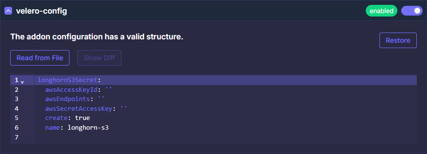 Для работы Velero, помимо модулей на данной странице, потребуется включить модуль хранения данных longhorn