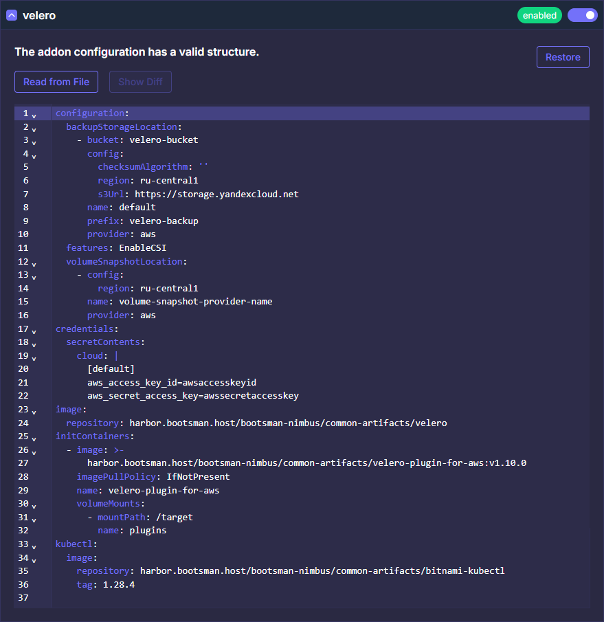 Подключение модуля velero-config