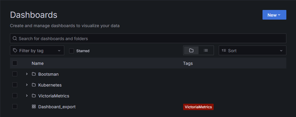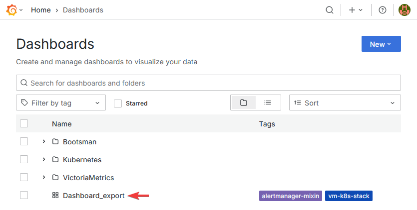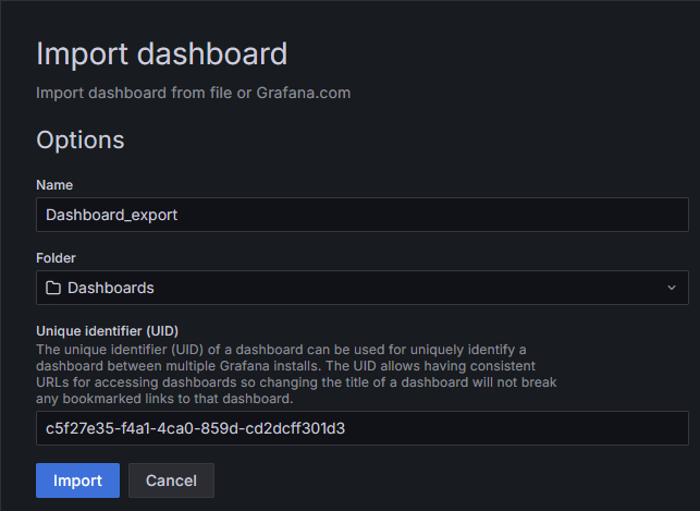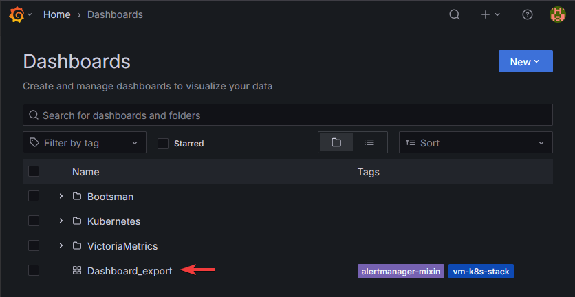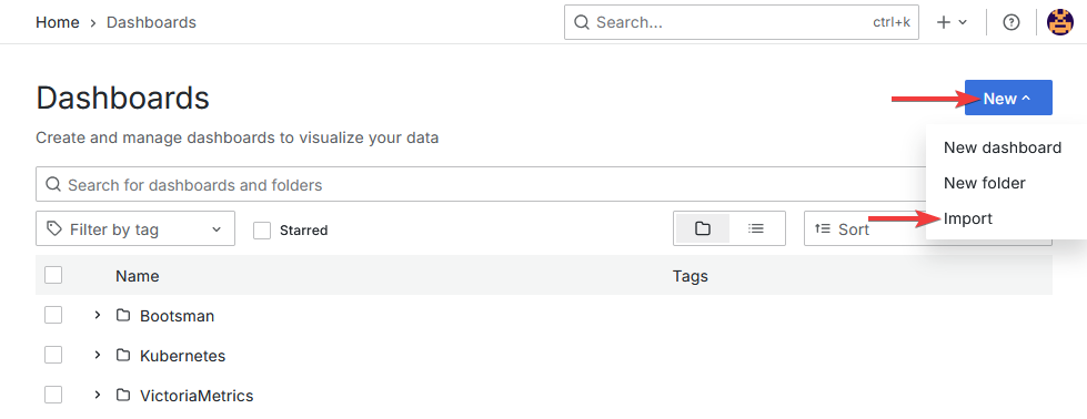 - Произвести импорт дашбордов в новый инстанс Grafana